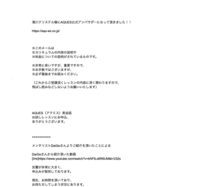 ドキュメントの内容は少し長いですが、アクエス英会話のレッスンについて記載されています。ここで合わないと思えば辞退もできます。認識の齟齬がないように確認しておきましょう。