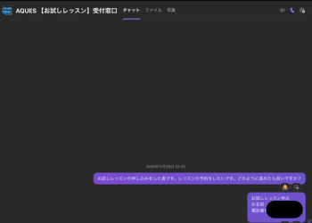資料のとおりにTeamsをダウンロード(すでにある方はログイン)し、アクエス英会話の窓口を検索します。レッスン申し込みの旨を伝えれば、連絡がきます。